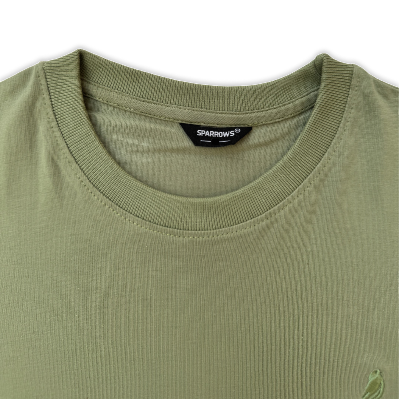 Chive Green Plain Logo Embroidered Tee — By Sparrows