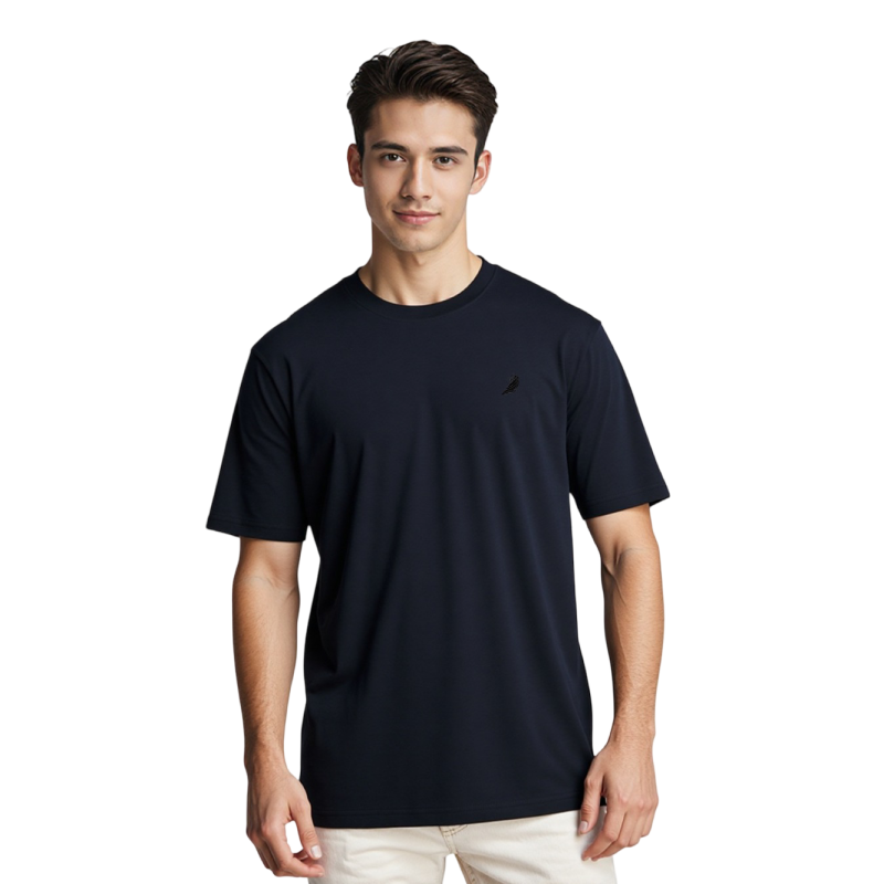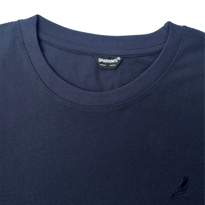 Navy Blue Plain Logo Embroidered Tee — By Sparrows