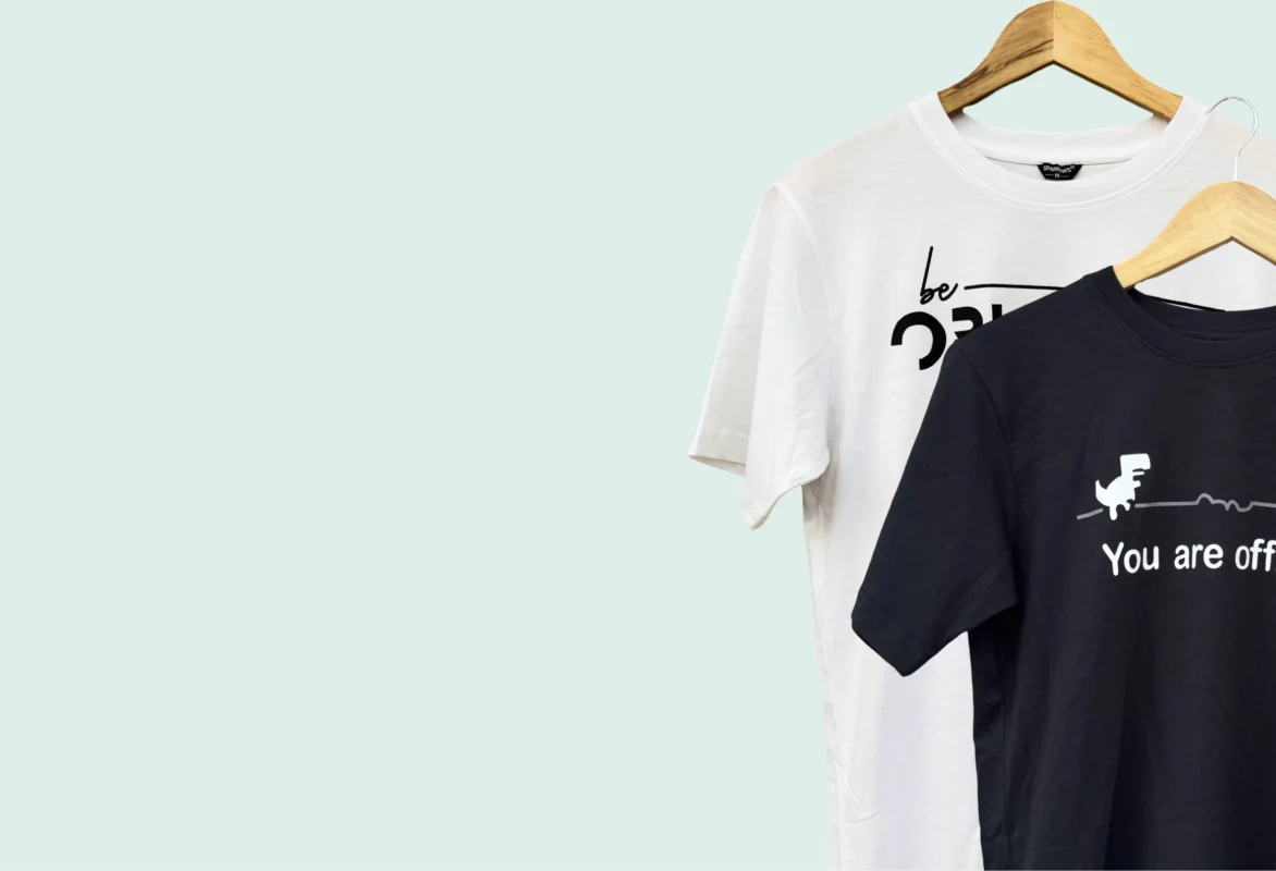We use 100% premium cotton for that perfect balance of softness, breathability, & durability. Our tees aren’t just made to look good — they’re made to feel good.